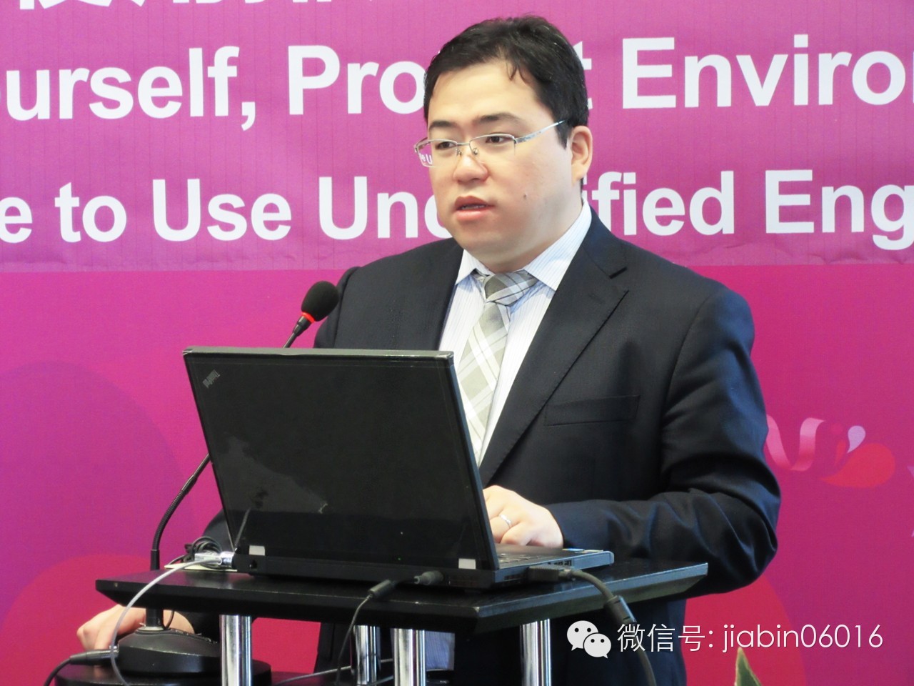 小汽油机分会为相关会员单位制作了以“保护自己 保护环境”—拒绝销售和使用排放不达标发动机为主题的易拉宝,设置于会员展位周边,展示大气污染与发动机排放的关系、经销商销售排放不达标产品的法律风险、消费者如何识别环保发动机、已取得中国环保型式核准的会员单位名单和环保投诉电话等内容,并于4月23日上午在展览会同期召开此主题的环保公益宣传研讨会,系统全面地介绍以上内容,并展示部分会员单位张贴排放标签的发动机产品。会议由小汽油机分会秘书长贾滨主持并做了题为“保护自己保护环境——拒绝销售和使用排放不达标发动机”的报告,百力通(上海)国际贸易有限公司中国区市场经理尹智超做了题为“如何识别排放达标发动机”的演讲和演示,来自百力通、重庆宗申、斯蒂尔、富世华、中坚、爱可公司以及相关参展代表约20人参加了会议,会中大家还就如何加强排放监管进行了深入交流。