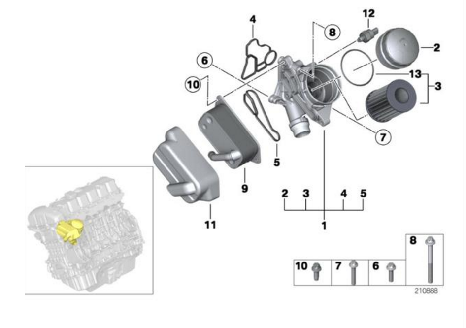冷却功能: 若机油温度高于正常值,会导致机油过稀,润滑效果下降。因此在热机条件下,流经机油热交换器的冷却液负责将机油热量吸收走,保持润滑系统内的机油平均温度不高于上限(一般为90℃)。