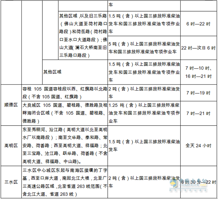 为减少机动车尾气污染,进一步提升空气质量,近日佛山市政府发布通告,决定调整重点区域货车限制通行时间及实施国三排放标准柴油货车限制通行交通管理措施。