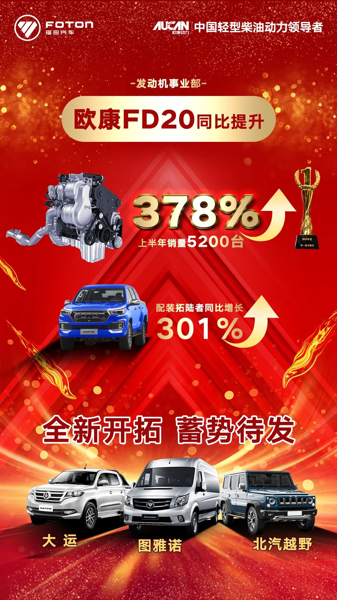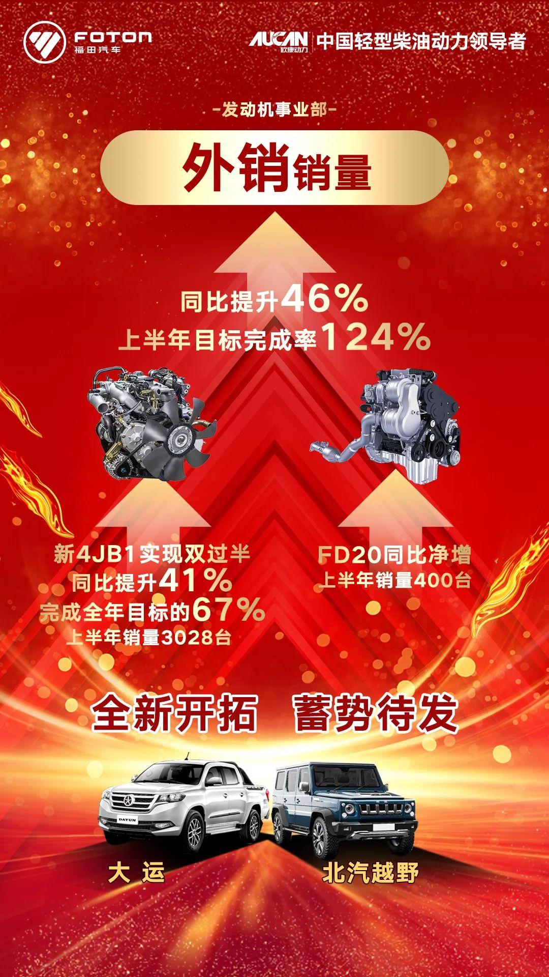 核芯驱动,未来可期。在2020年下半年伊始时,在二次创业的关键期,北汽福田发动机事业部,始终以聚焦价值,精益运营为经营理念,以致力于发展成为中国轻型柴油动力为战略目标,必将不断提高企业核心竞争力,创新推动产品升级转型,坚持质量为先,追求客户满意,坚守初心,全力以赴,为实现年度经营目标而持续奋斗!