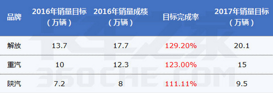 面对2017年的市场,解放将重卡目标定为20.1万辆——这比2016年解放重卡销量的14.8万辆多出5.3万辆。5万辆重卡是什么概念?须知江淮在重卡界也是响当当的招牌,2016年全年重卡销量也才4.29万,解放这是要再开一家江淮的架势!