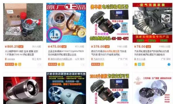 先说点初级的——电商平台上的“电扇涡轮”,我想大部分人都知道涡轮增压这个名词。而且都知道涡轮增压器能增加进气量从而提高发动机的动力。而涡轮的匹配和安装需要很高的专业技能,一些奸商正好的抓住了这个切入点,各种长得像涡轮压气机的吹风机、甚至机箱风扇一样的轴流式小风扇被包装成了所谓的“电子增压器”,有的奸商声称他的吹风机能吹灭十多米外的蜡烛,口口声声说能增加发动机多少动力什么的。