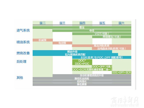 博格华纳中国排放系统总经理杨博也曾表达过类似观点,他认为:“在国六排放标准阶段,国内商用车尾气后处理形式将向着EGR+DOC+DPF+SCR的方向发展。”
