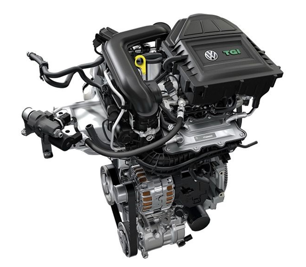 压缩天然气发动机(CNG)。自2002年起就向市场推出了压缩天然气发动机。新款三缸涡轮增压发动机的立体容量为1 L,扭矩高达66 kW(90 PS),该款产品在本次进行了展示。该款发动机可以使用汽油或压缩天然气。在汽油驱动模式下,其排放量极低,二氧化碳及氮氧化物颗粒的排放量都很低。紧凑型1.0 TGI发动机适用于大众旗下的小型车。