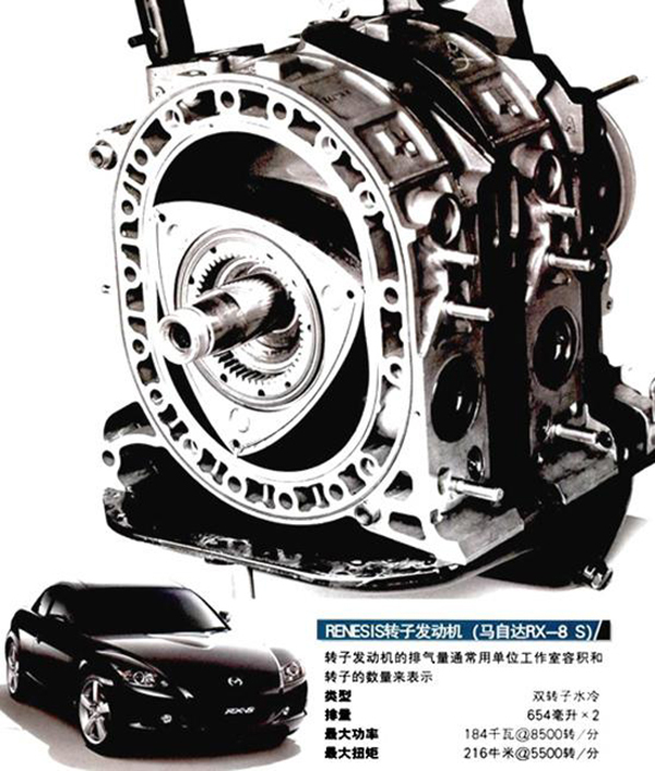 整个发动机只有两个转动部件,与一般的四冲程发动机具有进、排气活门等二十多个活动部件相比结构大大简化,发生故障的可能性也大大减小。除了以上的优点外,转子引擎的优点亦包括体积较小、重量轻、低重心、震动小等。但缺点同样明显,由于没有往复式发动机的高压缩比,使得燃烧不能够很充分。虽然马自达公司曾经给转子发动机增加了单涡轮增压和双涡轮增压等装置,但只是提高了输出马力,并适度的减少了尾气排放,但还是与往复式发动机有着很大的差距。
