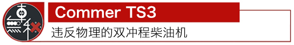 为了让柴油发动机足够短,能够给驾驶舱腾出足够的空间,法国Commer 公司生产了一款代号为TS3的发动机,它是一款3.3升的大功率双冲程对置活塞式柴油发动机——是的,你没看错,双冲程柴油机——是不是觉得有点反物理了?