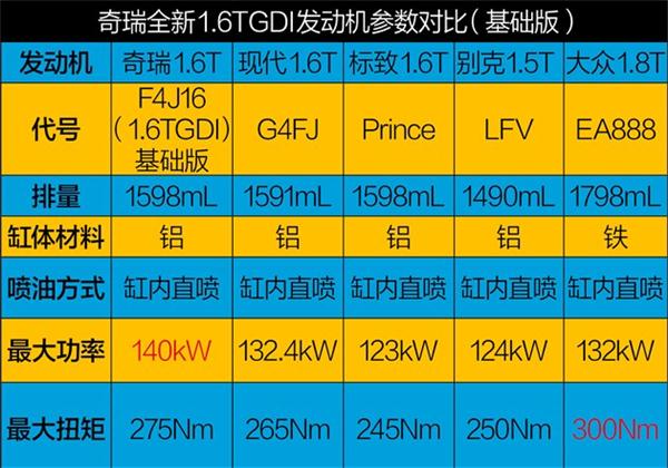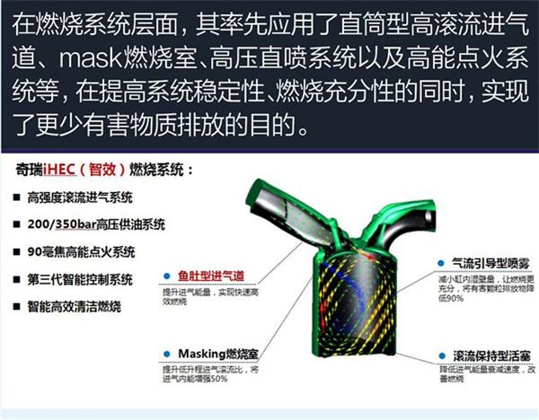 全新1.6TGDI搭载的奇瑞iHEC(智效)燃烧系统,应用了包括高强度滚流进气系统、200/350bar高压供油系统、90毫焦高能点火系统、第三代智能控制系统,以及智能高效清洁燃烧系统等顶尖技术,使得发动机具备大扭矩、低油耗、排放低、噪音小等优势特征。其中大扭矩已经从该发动机优秀的参数,尤其是扭矩数据中体现了;另外该发动机符合国六排放法规,而这也是自主品牌首台满足国六排放法规的直喷汽油机。