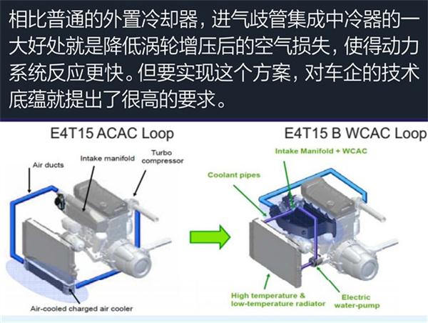 在进气歧管内布置中冷器,听起来容易,但做起来很难。因为它不是改变进气歧管的模具或者修改一下形状把中冷器放进去就可以。放进一个中冷器之后,进气歧管内部的进气温度与进气紊流就会受到影响,而中冷器的材质和进气歧管采用不同材质的话,就带来了更复杂的加工难度,而要保证这套系统的耐用性,就需要相应的大量测试。