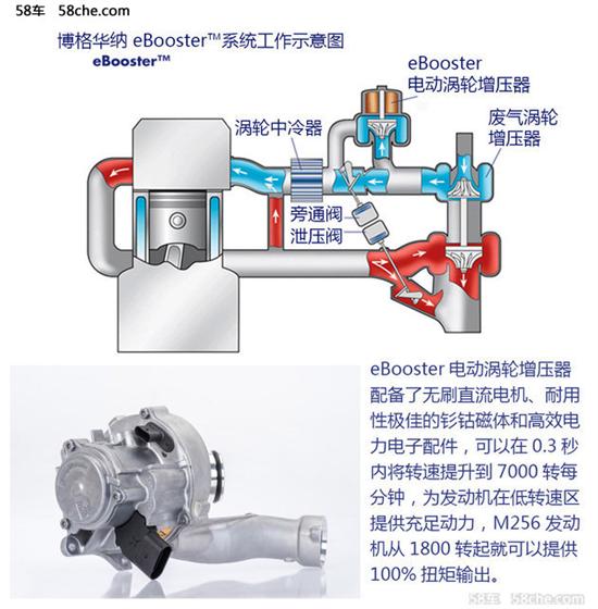 新M256虽然采用了双涡轮增压技术,但这次并非传统意义的双涡轮,而是使用了来自博格华纳的eBooster 电子涡轮增压技术。