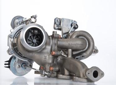 博格华纳的 R2S 可调二级涡轮增压技术系统由两种不同尺寸、互相串联的涡轮增压器组成,能够在整个发动机转速范围内产出较高的增压压力,同时保持平稳的功率。其中一个涡轮增压器搭载博格华纳最新推出的可变截面涡轮技术(VTG),其适用于高压条件下的发动机运作。同时,搭配上尺寸较大的B03水冷式涡轮增压器,则能优化低压环境下的废气循环。VTG涡轮增压器由电动执行器控制,在低发动机转速下能够快速响应,可瞬间增加发动机压力。而随着发动机转速的加快,旁路逐渐将废气引入较大的低压涡轮增压器,直到其完全运行,以保持流畅的动力输送,提高发动机效率。博格华纳的R2S涡轮增压技术可快速适应发动机运行状况的变化,从而实现快速响应,显著减少尾气排放。