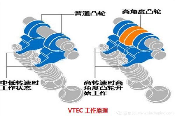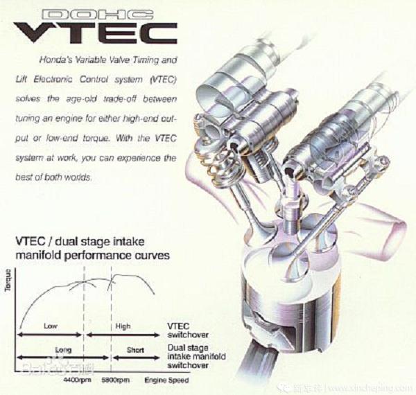 后来,本田率先使用了VTEC(Variable Valve Timing and Valve Lift Electronic Control System)技术,即在可变气门正时的基础上,又通过使用两组不同大小的凸轮,达到了可变气门升程的效果,在高转速时切换大凸轮增大进气,使发动机表现出更强的性能,这也就是现在本田粉经常吹的“VTEC is the best”和“爆 TEC”的由来。