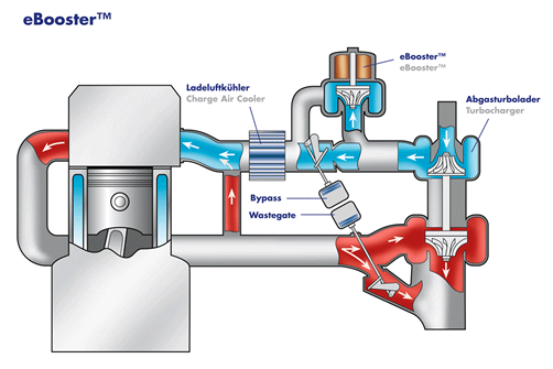 这台双涡轮增压的直6发动机不同于以往我们认为的增压方式,这次奔驰采用了来自博格华纳的电动涡轮增压技术“eBooster”,电动增压系统采用一个装配在涡轮增压器前端或后端的电动机驱动的涡轮增压器,配合一个传统的废气涡轮增压器,来协同工作,相当于将一大一小两个涡轮增压器串联在一起,以此大幅提高工作效率。