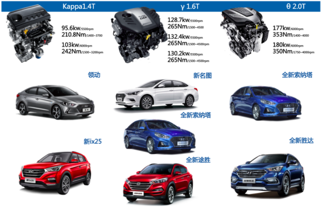 目前北京现代主要是1.4T、1.6T、2.0T三款涡轮增压发动机,占据北京现代产品总数的50%。这款Kappa 1.4T发动机总成主要应用于领动以及ix25两款车型上,最大功率95.6kW/5500rpm、峰值扭矩210.8Nm/1400-3700rpm。从技术角度解析,这款发动机核心亮点为环保性、经济性、动力性三大优势。