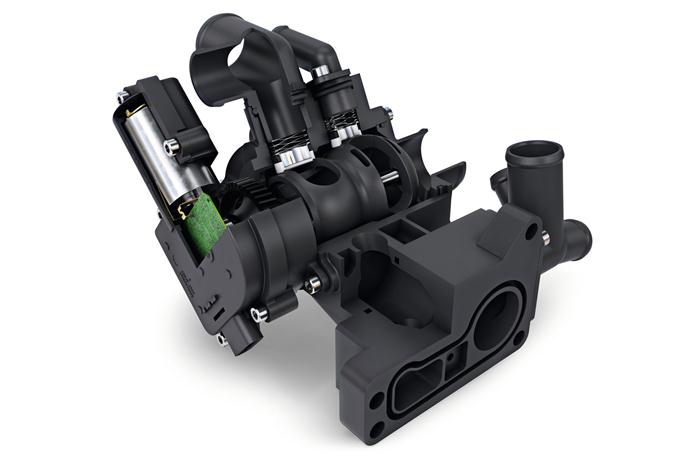 舍弗勒集团汽车事业部首席执行官彼得·普洛伊斯教授解释说:“降低汽车冷启动后产生的排放尤其重要。在汽车启动时,如果发动机油和变速箱油的温度依然很低的话,系统零部件的摩擦将大大增加,这样,燃油消耗也会随之增加,并间接产生更多的有害排放物。”舍弗勒在本届法兰克福车展上展示的第二代热管理模块为这一问题提供了解决方案。目前,该产品已经投入量产。该模块可以控制发动机和变速箱的冷却液回路,如果需要的话,还可以控制电驱动单元和电池的冷却。在暖机开始时,所有的冷却液回路都可以关闭,以加快每个独立系统的加热速度。此外,还可以根据发动机运行工况和驾驶室内的加热需求对冷却液回路进行整体控制。热管理模块中采用的执行机构也会影响发动机的功能和使用寿命。舍弗勒开发了可满足相应要求的定制化产品套件。测试结果表明,即使在新欧洲驾驶循环(NEDC)测试中,采用热管理模块也可使车辆油耗降低3%,在室外低温环境下冷启动时,可实现更高的燃油经济性。