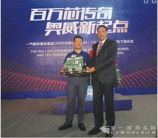 同年10月底,在纪念中国汽车年产量突破1000万辆的仪式上,一辆配装奥威CA6DM2发动机的金橙色解放J6驶下生产线,奥威作为中国自主研发发动机的代表再次吸引了全世界的目光。