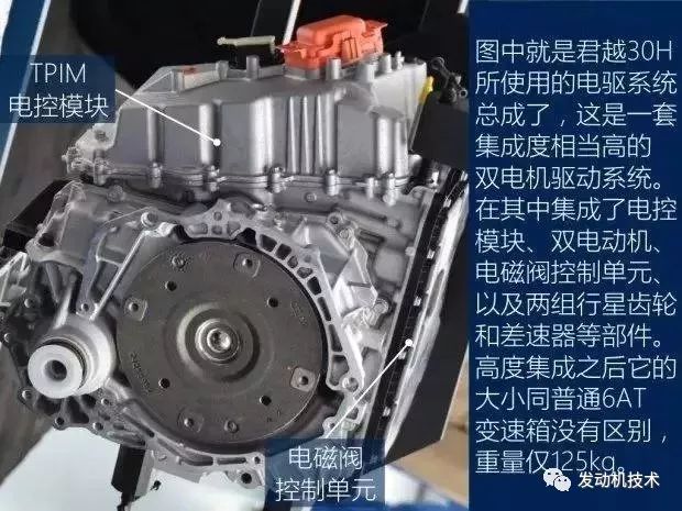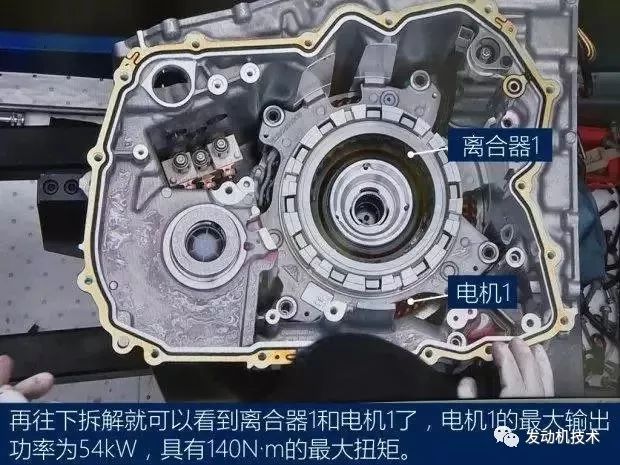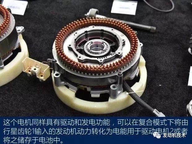 1号电机同样是一台永磁同步电机,动力输出比2号电机小一些,具有54kW/140N·m的动力输出能力。在工作时,这台电机主要起到辅助输出的作用,尤其是在应对高速行驶的情况下,它会将发动机的动力转化为电能用于驱动电机2或者是储存于电池中。