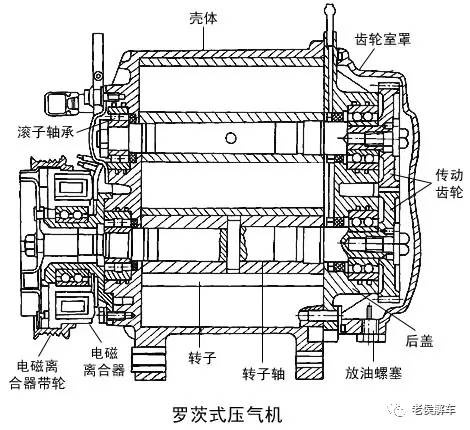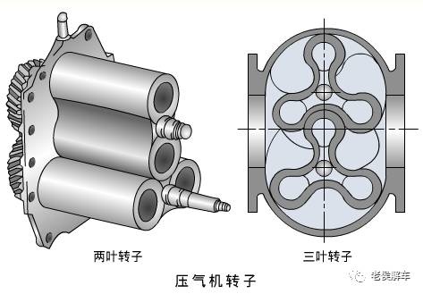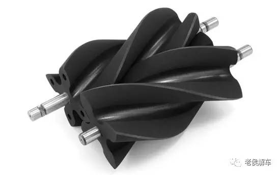 螺旋式增压的增压器是基本型的派生出来的,而且也长得很像,但它们的吸气压缩方式却截然不同。当空气被吸入增压器时,被螺旋状叶片强压入进气歧管内。