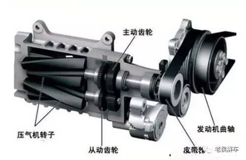 这种机械增压与涡轮增压很像,只不过它不是用发动机的废气驱动,而是用发动机的皮带带动。它和涡轮增压增压原理相同,吸入空气靠离心力把空气加压,以达到压缩空气的目的。