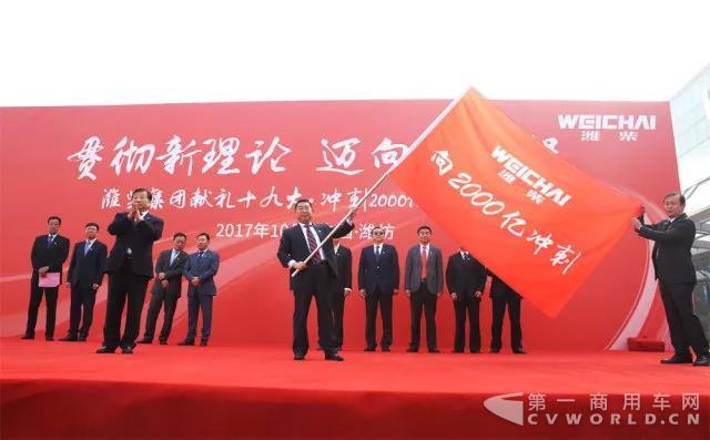 随后,谭旭光将“向2000亿冲刺”的大旗授予了潍柴集团张泉、袁宏明,全面吹响了冲刺2000亿的号角。