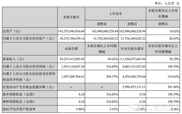 2017年10月31日,潍柴动力股份有限公司(以下简称“潍柴动力”)公布其2017年第三季度报告。报告显示,潍柴动力在第三季度(2017年7月1日至2017年9月30日)实现营业收入392.37亿元,较上年同期增长89.42%,第三季度归属于上市公司股东的净利润达到19.53亿元,较去年同期大幅增长316.05%。至此,潍柴动力前三季度(2017年1月1日至2017年9月30日)营业收入累计达到1115.51亿元,同比增长76.29%;前三季度归属于上市公司股东的净利润为46.03亿元,同比增长198.79%。