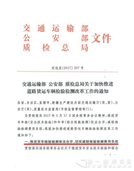 1. 推进货车年检年审依法合并(简称两检合并),有效减轻检验检测费用负担;
