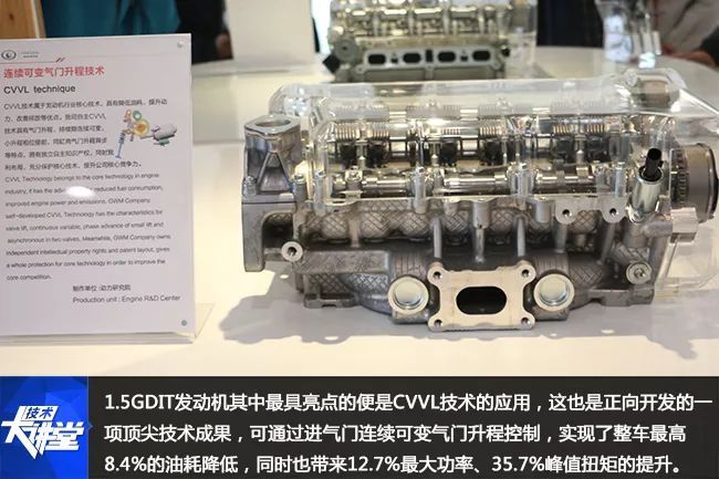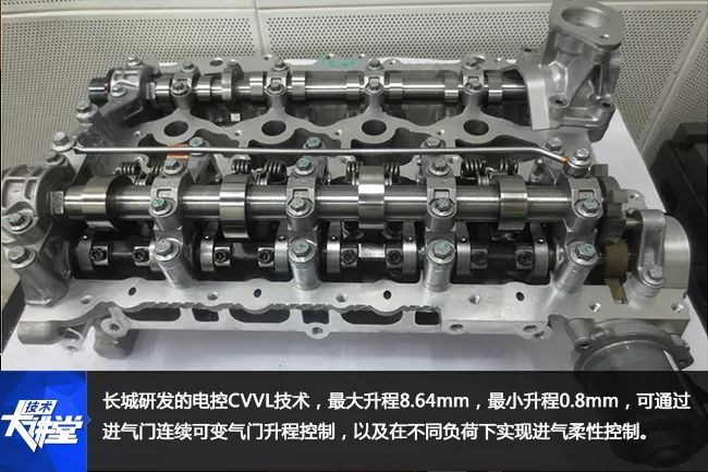 通常而言,优化发动机单一部件一般能够降低2%-3%的整车油耗,长城研发的电控CVVL技术,最大升程8.64mm,最小升程0.8mm,可通过进气门连续可变气门升程控制,以及在不同负荷下实现进气柔性控制,和在部分负荷工况通过采用小升程及提前小升程相位的方法,实现了整车最高8.4%的油耗降低,同时也带来12.7%最大功率、35.7%峰值扭矩的提升。对一般消费者而言,最简单的理解,就是进气门从两级可变晋级为柔性控制的多级可变,这项技术的攻坚带来了非常好的社会效益。