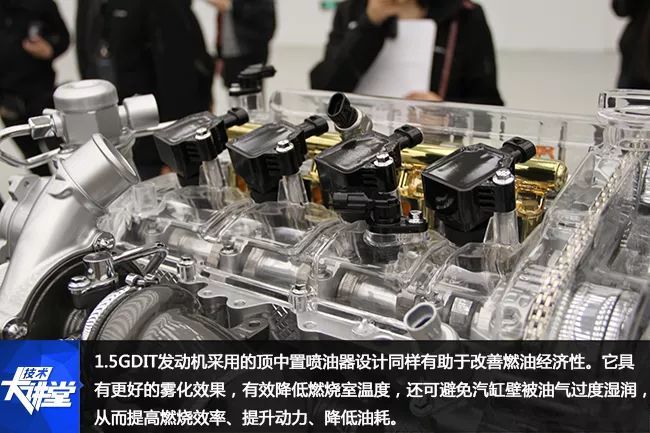 1.5GDIT发动机采用的顶中置喷油器设计同样有助于改善燃油经济性。它具有更好的雾化效果,有效降低燃烧室温度,还可避免汽缸壁被油气过度湿润,从而提高燃烧效率、提升动力、降低油耗。而电控增压器相比传统的废气涡轮增压器具有更快的响应速度,能让进气压力完美匹配发动机的工况。