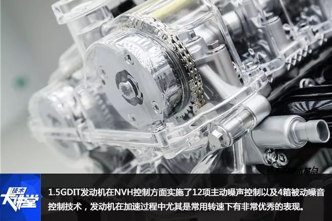 1.5GDIT发动机在NVH控制方面实施了12项主动噪声控制以及4箱被动噪音控制技术,包括悬吊式喷油器、EVO高压油泵、高刚度零部件设计、怠速小升程策略、小节距静音链系统等,相较几款主流合资车型,单就发动机NVH表现来说,1.5GDIT发动机在加速过程中尤其是常用转速下有非常优秀的表现。
