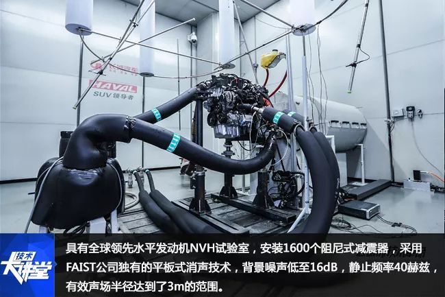 联合德国FAIST公司设计建造的,具有全球领先水平发动机NVH试验室,安装1600个阻尼式减震器,采用FAIST公司独有的平板式消声技术,背景噪声低至16dB,静止频率40赫兹,有效声场半径达到了3m的范围,从而保证测试结果的精确。