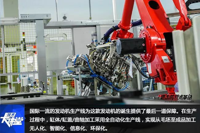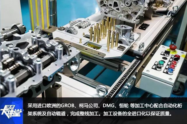 国际一流的发动机生产线为这款发动机的诞生提供了最后一道保障。在生产过程中,缸体/缸盖/曲轴加工采用全自动化生产线,实现从毛坯至成品加工无人化、智能化、信息化、环保化。采用进口欧洲的GROB、柯马公司、DMG、恒轮等加工中心配合自动化桁架系统及自动辊道,完成整线加工,加工设备的全进口化以保证质量。
