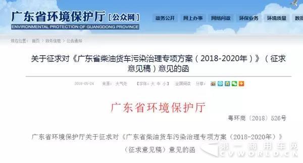 柴油货车的尾气污染影响空气质量的重要因素,5月24日,《广东省柴油货车污染治理专项方案(2018~2020年)(征求意见稿)》开始公示,将对柴油货车污染治理出大招。