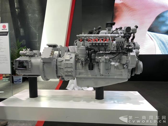 在新能源产品方面,潍柴这次带来了1款WEP系列插电式并联混合动力系统总成,是潍柴为应对商用车新能源化推出的1款动力总成,目前已批量应用于10-12米城市公交客车。这套动力总成的发动机型号为WP6NG,达到国六排放标准;驱动电机是永磁同步电机,额定功率60KW,峰值功率117KW;变速箱型号是5HS90T;总成系统是潍柴电控系统。除此之外,这套动力总成采用国际流行的安全设计标准,保证全天候安全运行;发动机和电机之间的实时优化的扭矩分配控制,经济性更优;具有蠕动行驶、防溜车保护;坡起辅助;坡行回家等低俗操作性;它的离合器有过磨保护及磨损自适应补偿,能延长寿命。