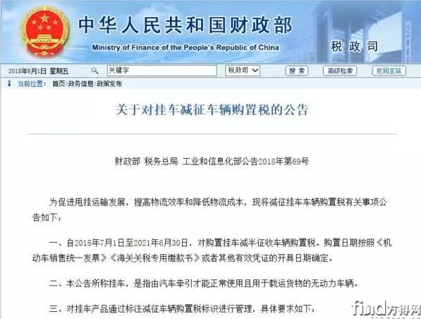 财政部、税务总局、工业和信息化部,5月25日联合发布挂车减征车辆购置税公告。