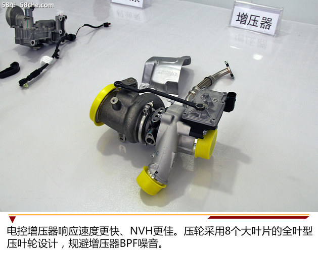 电控增压器响应速度更快、NVH更佳。压轮采用8个大叶片的全叶型压叶轮设计,规避增压器BPF噪音,而且全新的高效率涡轮设计,可提升涡轮通过能力。此外,该机构通过优化匹配及DVP验证,确保了增压器安全可靠性。