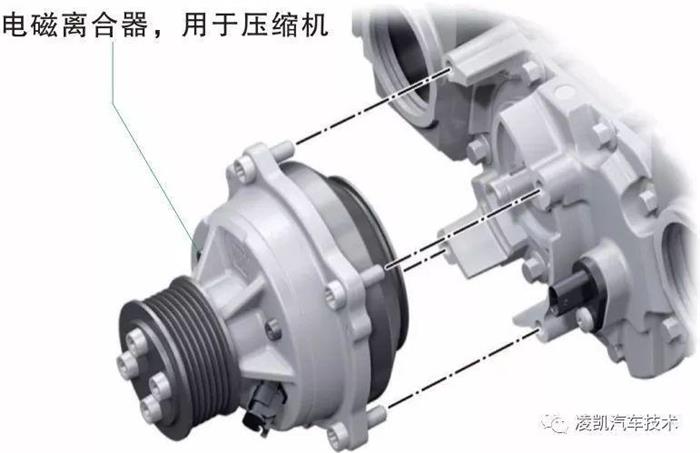 压缩机的电磁离合器作为单独的模块,旋接在压缩机的右侧转子轴前部。它承担了接通或关闭压缩机的任务。