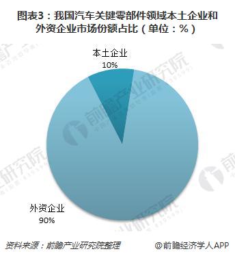 尽管外资背景企业(独资以及中外合资)仅占规模企业数的20%,但其市场份额高达70%以上。而在汽车电子和发动机关键零部件等高科技含量领域,外资市场份额高达90%。在发动机管理系统(包括电喷)、ABS等核心零部件领域,外资企业所占比例分别高达95%和90%以上。