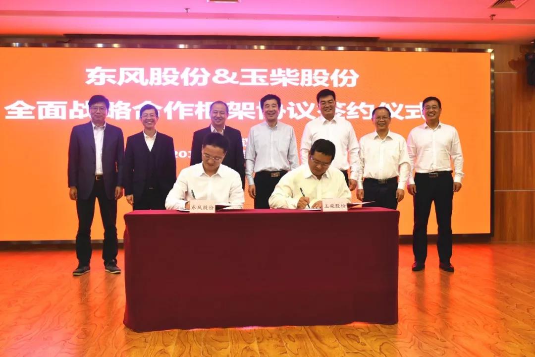 10月25日,玉柴股份与东风股份全面战略合作协议签约仪式在东风股份总部举行。在玉柴股份董事长晏平,东风汽车有限公司副总裁、东风股份董事长丁绍斌的见证下,玉柴股份总裁吴其伟与东风股份总经理陈彬代表双方公司在协议书上签字。