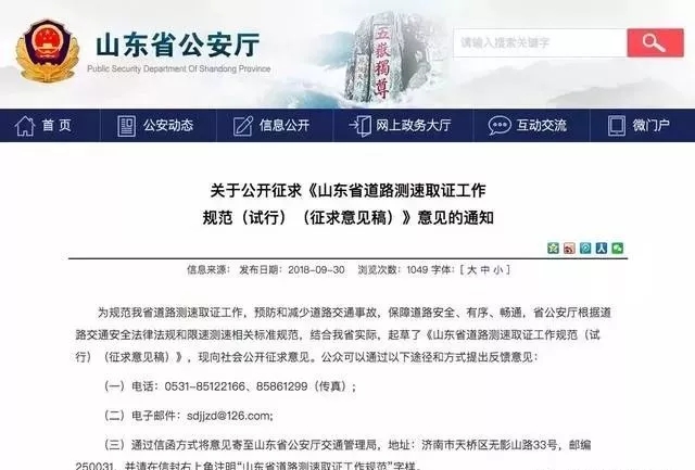 近日,山东省公安厅发布新的测速取证规范征求意见稿以文件的形式规范限速测速。