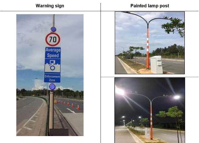 新加坡交通部门会在执法区域的出入口处配置标识,提醒驾驶员遵守限速要求。平均车速传感器将配置到喷了亮橙色油漆的交通灯上,旨在确保其高度的可见性。