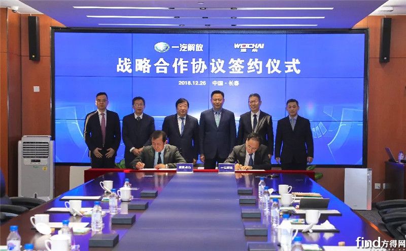 2018年12月26日,潍柴动力与一汽解放在吉林长春签署战略合作协议。