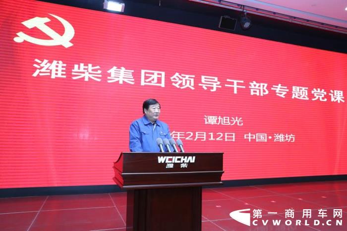2月12日,谭旭光在潍柴集团领导干部专题党课上,与千名领导干部共同学习了刘家义书记讲话,并结合企业发展实际专门指出,有些高管团队成员已经长期不到一线,无论是生产一线、市场一线、科技一线,还是世界上最发达的信息一线,真实的情况并不掌握,要建立规范有序的会议和调研制度。