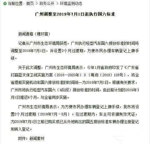 近日,在广州市生态环境局官网头条上,正式官宣:广州调整至2019年7月1日起执行国六标准。原来的计划为2019年3月1日,新规定推迟了4个月,和整个广东省同步实施。