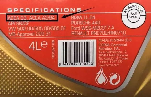 ACEA标准分为3个系列,分别为:A/B系列:汽油和轻负荷柴油发动机油,包括: A1-A5/B1-B5;C系列:适应催化剂型发动机油,包括:C1-C5;E系列:重负荷柴油发动机油,包括:E4、E6、E7、E9。字母后面数值越大,对于发动机的保护就更加完善。