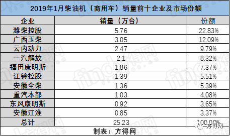 由于商用车是柴油机的主要需求市场,因此,2019年开年商用车表现不温不火,是2018柴油机没有增长的直接原因。
