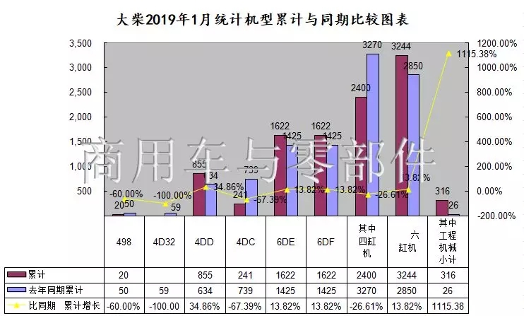 在统计机型中,2019年1月朝柴主要产品装机6152台,比去年同期的5508台增长11.69%。