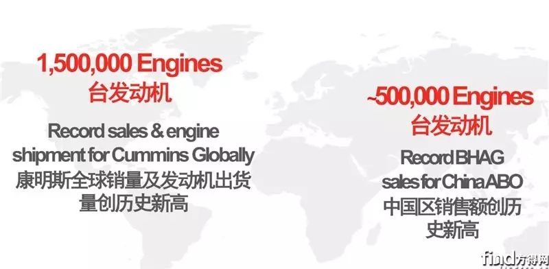 2018年,康明斯柴油机的出货量为150万台,创历史新高。其中,在中国销量超过了50万台柴油发动机,超康明斯全球销量的三分之一,销售额创下历史新高。
