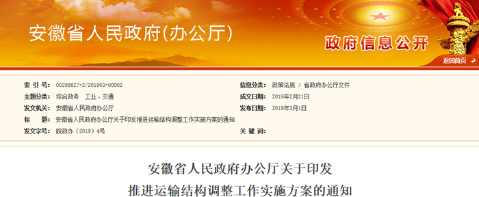 安徽省推进运输结构调整工作实施方案