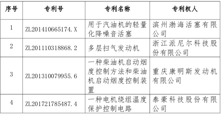 2019 年 5 月 24 日,中国内燃机工业协会在北京组织召开 了内燃机行业推荐申报第 21 届中国专利奖的评审会。经专 家评审,按照如下顺序推荐参评: