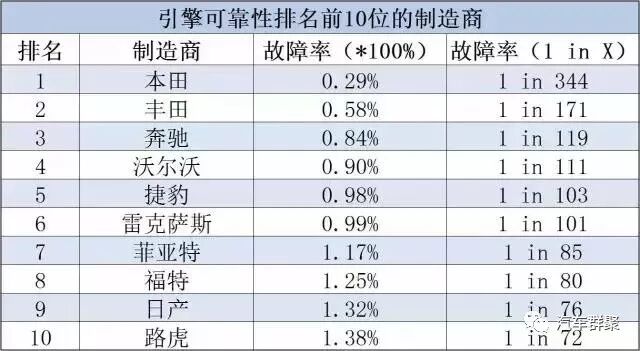 英国独立汽车机械故障保险公司每年都会对超过5万个样本进行调研,这份排行榜在准确率和广泛性上极具参考性,是值得信赖的。