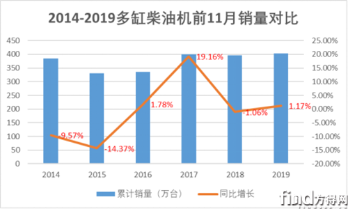 从累计销量来看,纵观2014年-2019年前11月,2019年是柴油机市场的顶峰,且仍在增长过程中。